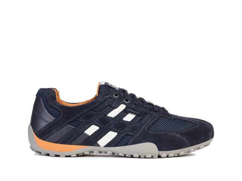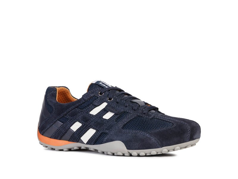 Mit seinem lässigen und gleichzeitig sportlichen Oberschuh aus Veloursleder und Mesh ist Uomo Snake der kultige, vielseitige Herrensneaker von Geox, um den keine Herrengarderobe herumkommt.