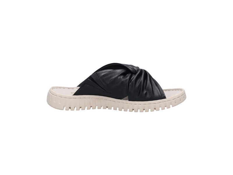Mit ihrem geflochtenen Obermaterial in schlichtem Schwarz muten diese Pantoletten fast minimalistisch an und passen zu weißen und leinenfarbigen Outfits. Ihre gezackte Gummisohle sichert Flexibilität und bietet zugleich durch die solide eingearbeiteten, elastischen Bänder sehr guten Halt.