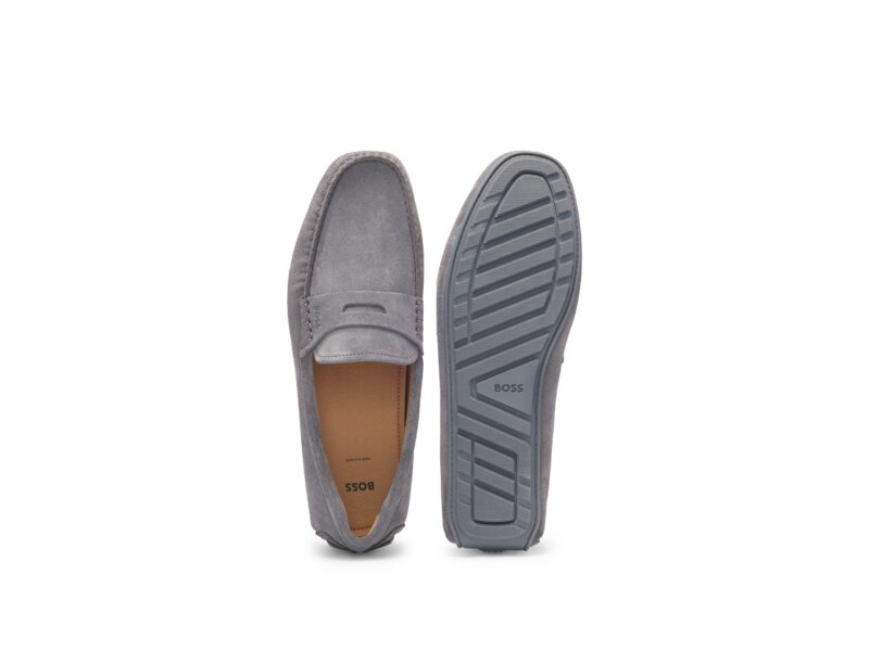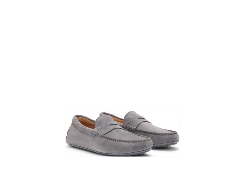 In Portugal gefertigte Mokassins aus Veloursleder mit Pennyloafer-Detail