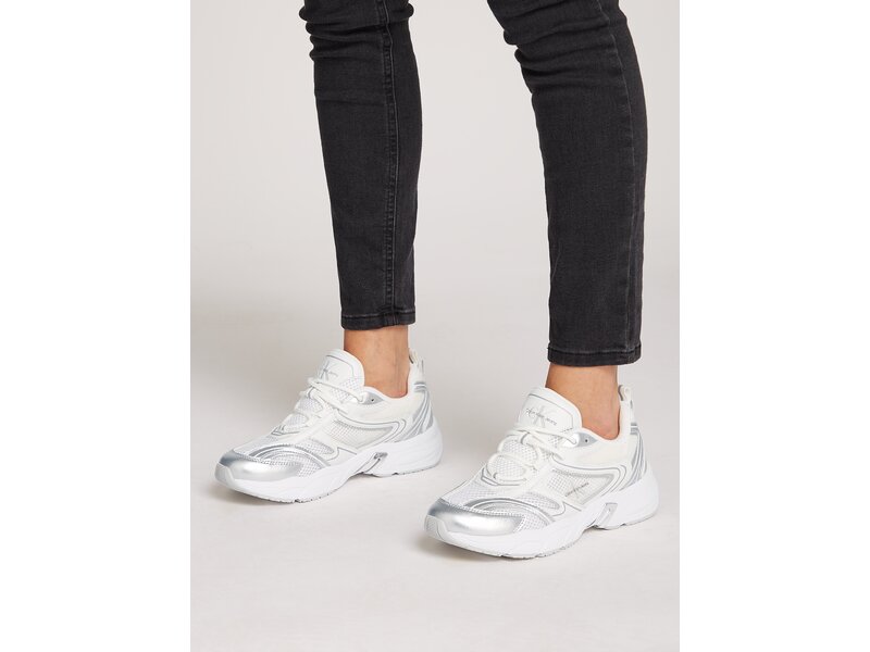 Calvin Klein - RETRO TENNIS LOW LACE MH ML MTL - YW0YW01463/0K9 - Weiß/Silber