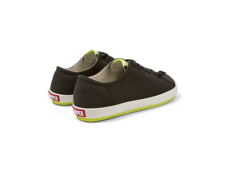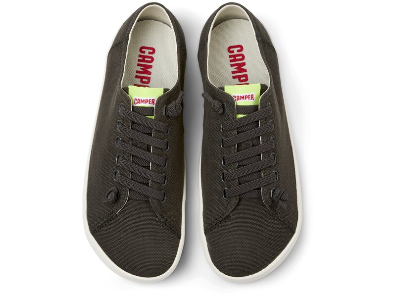 Grauer Herrensneaker aus recycelter Baumwolle mit OrthoLite® Recycled™-Fußbett, elastischen Schnürsenkeln und Gummilaufsohle. Unser Peu Rambla besticht durch die charakteristischen Zickzackschnürsenkel und verwendete verschiedene Materialien für einen lässigen Look mit einem Hauch von Spaß.