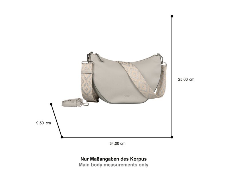 | Abmaße Tasche | L34 x B9,5 x H25 |