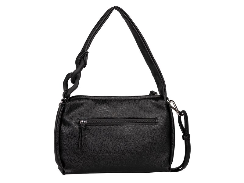 Stilvoll im Design präsentiert sich Gabor FIORA. Das genarbte recycelte Kunstleder fällt weich, die großen Kettenglieder am Henkel und die originell gefaltete Seitenkonstruktion sind die Highlights auf dieser sonst minimalistisch gehaltenen Taschengruppe. Mittlere Umhängetasche mit Reißverschlussöffnung, 1 Reißverschluss-Rückfach. Innen 1 Reißverschlussfach, 1 Smartphone-Fach. 1 flacher Henkel, 1 abnehmbarer verstellbarer Schulterriemen.