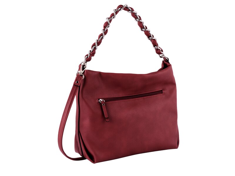 Das Design der Gruppe VALENTINE besticht durch das Zusammenspiel aus weichem, natürlich genarbtem Lederimitat und soften Shapes. Die hochwertige, mit Kunstleder durchzogene Gliederkette setzt einen gelungenen Akzent. Beutel mit Reißverschlussöffnung und 1 Reißverschluss-Rückfach. Innen 1 Reißverschlussfach, 1 Smartphone-Fach, 1 Steckfach, 1 Tragegriff, 1 abnehmbarer, verstellbarer Schulterriemen.