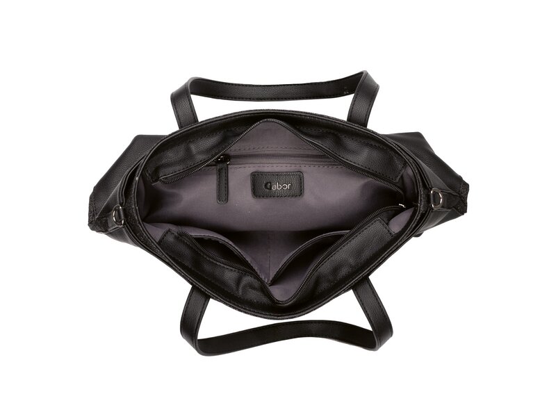 Die feinen glitzernden Zierkanten und modernen Taschenformen verleihen der Gruppe NOARA von Gabor einen unaufdringlichen und dennoch luxuriösen Look. Fein genarbtes Lederimitat rundet die Modelle stilvoll ab. Großer Shopper im Querformat mit Reißverschlussöffnung, 1 offene Tasche vorne mit Magnetverschluss, 1 offenes Fach hinten mit Magnetverschluss, 1 Reißverschlussfach hinten. Innen 1 Reißverschlussfach, 1 Smartphone-Fach, 1 Steckfach, DIN A4-tauglich. 2 flache Henkel, 1 abnehmbarer verstellbarer Schulterriemen.