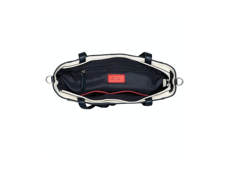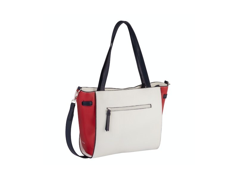 Gruppe SELMA besticht durch eine klassische Formensprache. Das schmückende Knotendetail, als auch die dekorative Naht verleihen der Tasche einen unverwechselbaren Look. Farbakzente sorgen für Modernität und maritime Sommerlichkeit. Querformatiger Shopper mit Reißverschlussöffnung , 1 Reißverschlussrückfach. Innen 1 Reißverschlussrückfach, 1 Smartphone-Fach, 1 Steckfach, DIN A4-tauglich, doppelter flacher Trageriemen kurz, 1 verstellbarer Schulterriemen - abnehmbar._x000D_ Maße in cm: 38 x 11 x 24