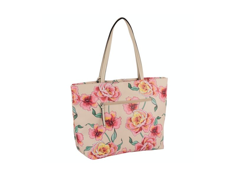 Der farbenfrohe All-Over Blumenprint auf einer besonders weichen Lederimitat-Qualität zeichnen den sommerlichen Look der Gruppe SOPHIE aus. Der Logoanhänger setzt einen gekonnten Akzent zu der sonst schlichten Formensprache. Querformatiger Shopper mit Reißverschlussöffnung, 1 Reißverschlussrückfach. Innen 1 Reißverschlussfach, 1 Smartphone-Fach, 1 Steckfach, DIN A4-tauglich, doppelter flacher Trageriemen lang, 1 abnehmbarer Anhänger._x000D_ Maße in cm: 45 x 15 x 31