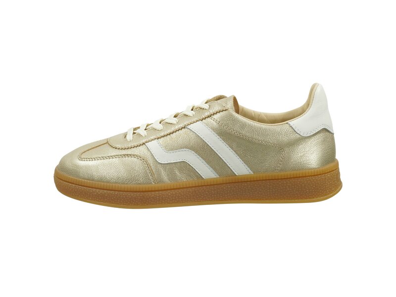 Ein eleganter, retro-inspirierter Sneaker mit schlanker Silhouette und Vintage-Charme. Das Obermaterial aus Leder in Metallic Optik sowie das Lederinnenfutter und die lederüberzogener Decksohle sorgen für einen angenehmen Tragekomfort. Die kultigen honigfarbenen Laufsohlen aus Gummi verleihen dem Schuh seinen einzigartigen Charakter. Mit dezentem, seitlichen Logo Branding. Alles in allem ein Must-have für jede Frau! Mit dem Kauf dieses Schuhs unterstützen Sie eine nachhaltige Lederproduktion durch die Leather Working Group.