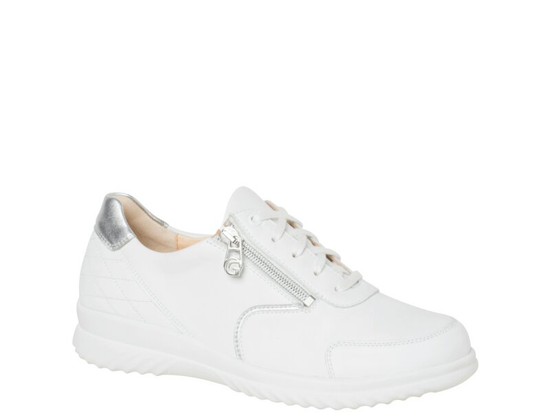 Das Modell Heike ist ein absoluter Allrounder – casual und dabei dennoch schick! Der sportive Look wird von edlen Materialien und eleganten Details komplettiert. Die Weite H umschmeichelt den Fuß und gibt breiteren Fußballen eine schöne Form. Der Sneaker in weißem Glattleder überzeugt mit einem klassischen Design und hervorragendem Komfort. Er begleitet Sie zu den unterschiedlichsten Anlässen, sowohl tagsüber als auch abends. Mit einer Absatzhöhe von 25 mm wird der Bewegungsapparat unterstützt, gleichzeitig profitieren Sie von dem kleinen Plus an Höhe. Die leichte und rutschhemmende Energy-PU Sohle bietet eine sehr gute Dämpfung. Das wechselbare Fußbett mit Weichauftritt lässt sich mühelos herausnehmen und gegen eigene Einlagen austauschen. Die Kombination aus Schnürsenkel mit seitlichem Reißverschluss ermöglicht ein schnelles An- & Ausziehen. Das Innenfutter besteht aus butterweichem Leder und einer zusätzlichen Polsterung, die sich an den Fuß anschmiegt und zudem über viele positive Eigenschaften verfügt. So ist das Material atmungsaktiv, extrem robust und hautverträglich. Unsere Heike ist ein detailverliebter Sneaker in trendigen Material- und Farbarrangements sowie perfekter Passform – eine ideale Ergänzung für Ihre Garderobe!