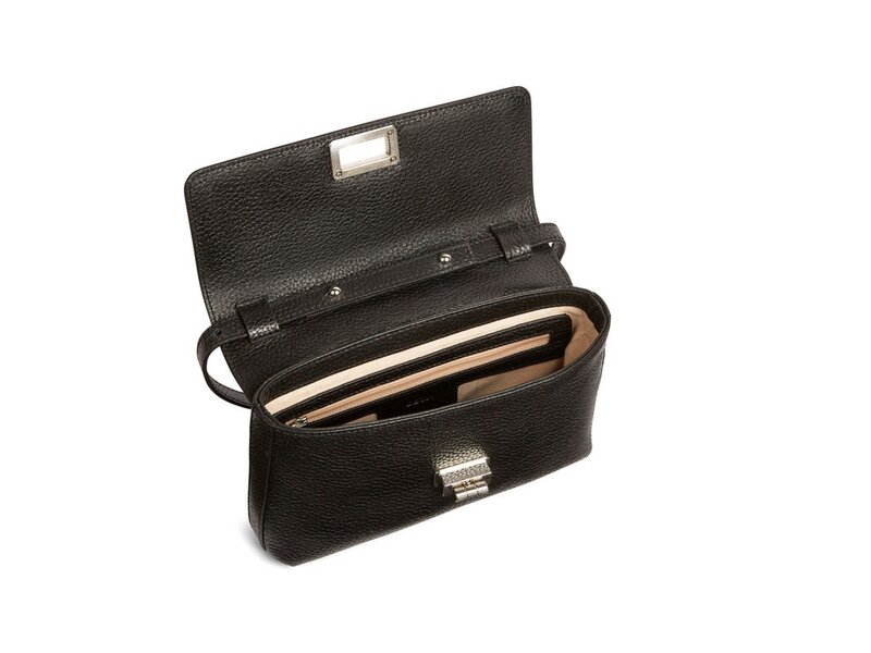 Liliane ist eine vielseitig einsetzbar Mini-Bag aus Walkleder, perfekt für den Day-to-Night-Look. Die Handtasche kann tagsüber mit dem Metallic-Schultergurt getragen werden, oder als Clutch in der Hand zu einem eleganten Outfit. Schultergurt aus Leder mit leichter Metallkette, verstellbar und abnehmbar.Innen: Tasche mit Reißverschluss.
