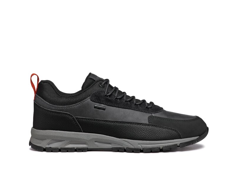 Geox Doray ABX ist ein atmungsaktiver und stoßgedämpfter Low-Cut-Herrensneaker mit einem Hybrid-Design im Outdoor-Stil. Dieses Modell aus Material in Walkleder-Optik und in gewachster Lederoptik gewährleistet auch bei starkem Regen Schutz.