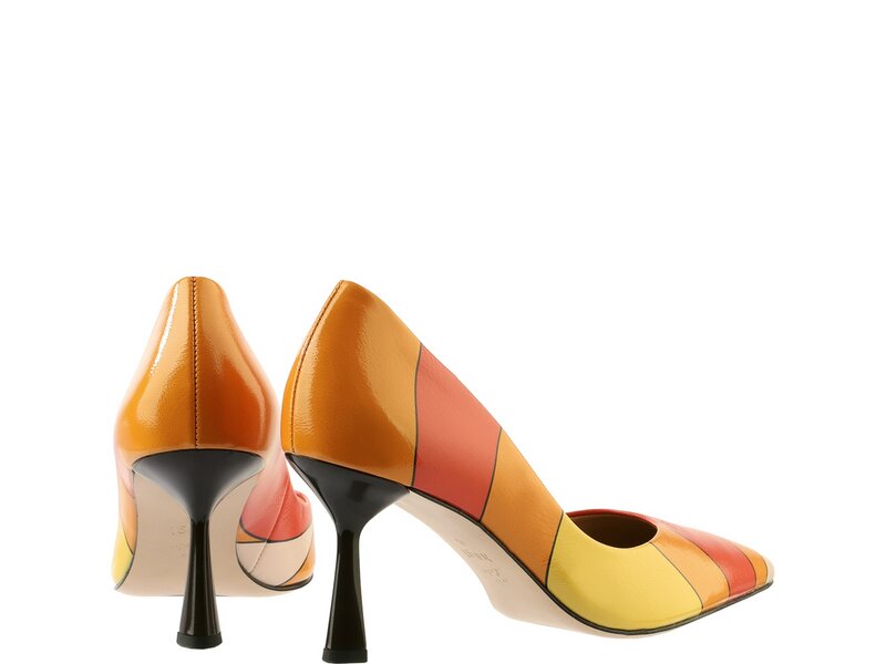 Charme, Lebensfreude und Sommer Feeling verbinden sich in den Schattierungen von Gelb, Orange und Rot unseres exklusiven Högl Love Prints, der die Optik des Modells "Marilyn" ziert. Feminine Akzente setzen der taillierte Absatz und der spitze Leisten. Neben dem sommerlichen Design und der Herstellung in Europa punkten die eleganten Pumps mit hervorragendem Tragekomfort. Softes Leder ist die Grundlage für den Damenschuh in Premium Qualität, der Sie zu Sommerfesten, Partys und Hochzeiten begleitet. Den perfekten Look kreieren Sie mit der dazu passenden Tasche "Lovely".