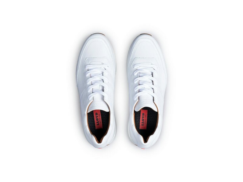 Der LLOYD Low Top Sneaker aus weißem Glattleder überzeugt durch eine extrem leichte und schockabsorbierende Sohle. Ein sportliches Auftreten ist mit dem Sneaker gegeben. Das weiche, glatte Leder sorgt für eine elegante Optik. Mittels Leder- und Textilfütterung ist der Sneaker komfortabel und atmungsaktiv. Durch das Variofootbed ist das Modell aufgrund des herausnehmbaren Fußbettes optimal für Einlagen geeignet.