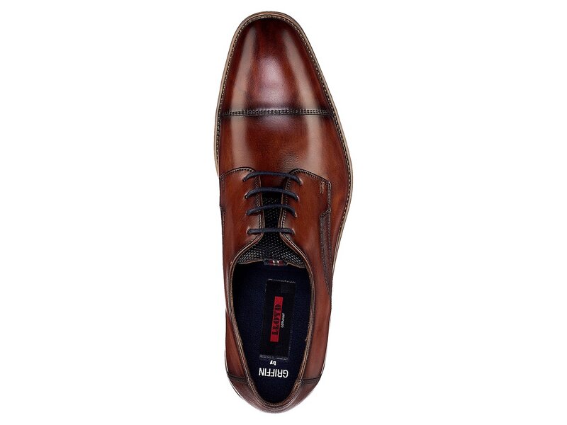 Herrenschnürschuh im klassischen Look. Der Derbyschuh aus weichem Glattleder ergänzt das Businessoutfit perfekt. Die bequeme Gummisohle sorgt für hohen Komfort beim Tragen.