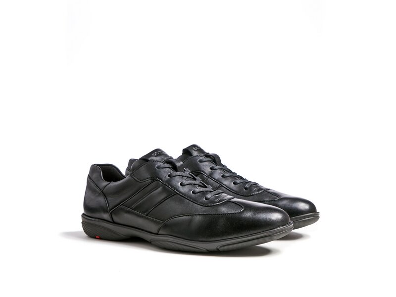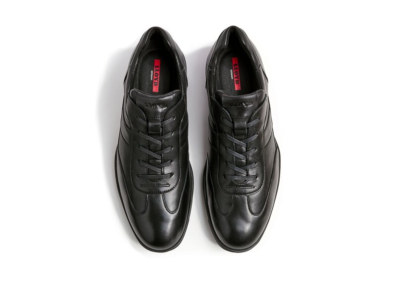 Durch seine extrem leichte und schockabsorbierende Sohle überzeugt der LLOYD Sneaker »BREVIS« aus Glattleder. Eine elastische Gummisohle und eine Schnürung runden diesen Schuh optisch ab. Zudem sind die leder- und textilgefütterten Schuhe mit einem Variofootbed versehen.