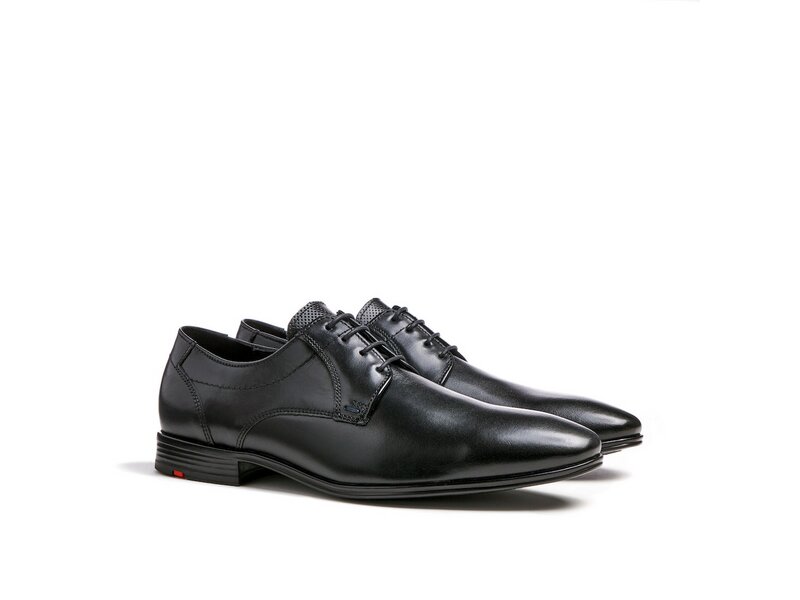 Eleganter, zeitloser Schnürschuh aus hochwertigem, anschmiegsamen Glattleder. Das junge Design wird durch feine Details wie blaue Senknadeln und Handriegel unterstrichen. Mit flexibler und modische enganliegender Gummisohle ist dieser Klassiker ein idealer Businessbegleiter.