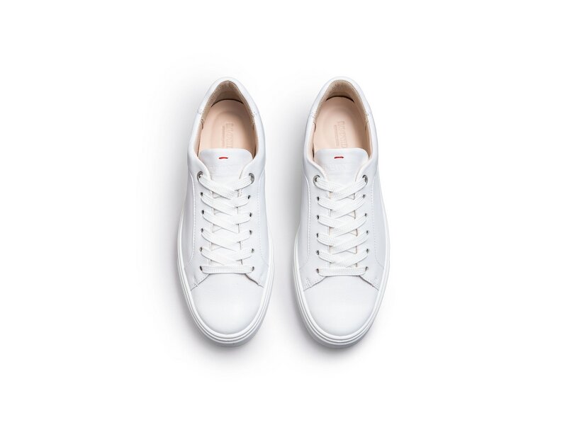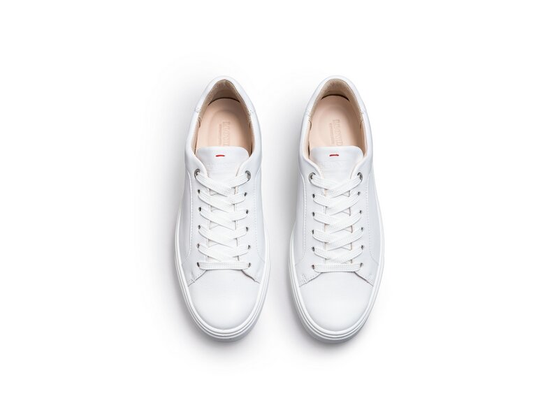 Die LLOYD Damen Sneaker aus weißem Glattleder mit flachem Absatz überzeugen durch ihr sportliches Design. Eine rutschfeste Gummisohle und eine Schnürung runden dieses Modell optisch ab. Die ledergefütterten Damenschuhe verfügen zudem über ein Variofootbed.<