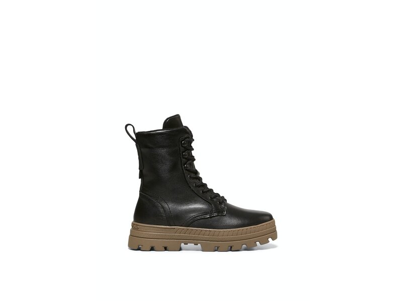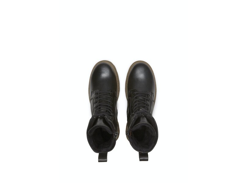 Leicht und stark zugleich: der lässige Schnürstiefel ist aus edlem Nappa-Rindleder gefertigt und mit einer extra leichten Laufsohle aus TR versehen. Innen sorgt ein flauschiges Futter aus Mikrofaser für Wärme und Komfort. Die runde Schnürung ist durch robuste Metallösen und praktische Haken gezogen, ein Innenzipper erleichtert das An- und Ausziehen. Rückseitig ist ein stabiler Leder-Loop mit Echtleder-Logo angebracht. Die hochgezogene Laufsohle zeigt sich im Fersenbereich ebenfalls mit Logo. Made in Portugal.