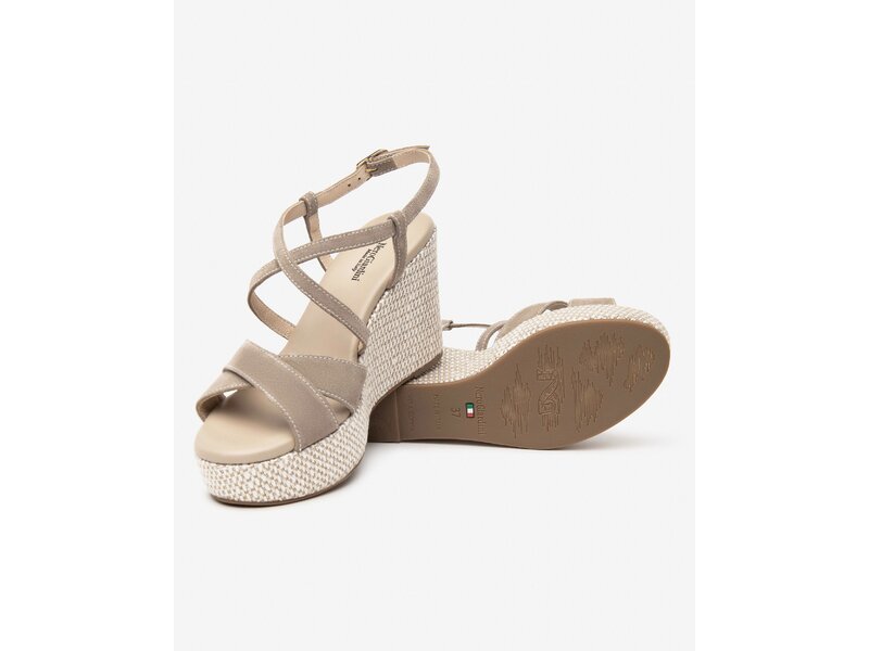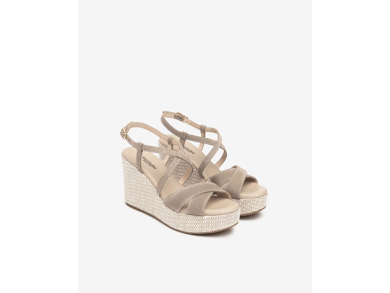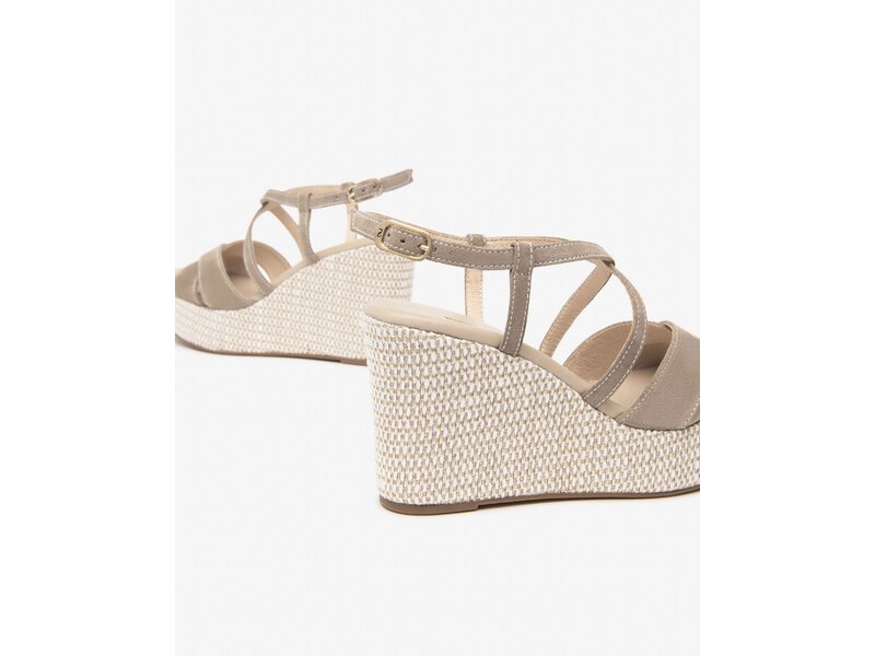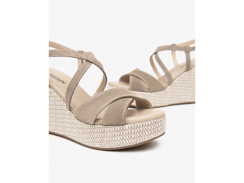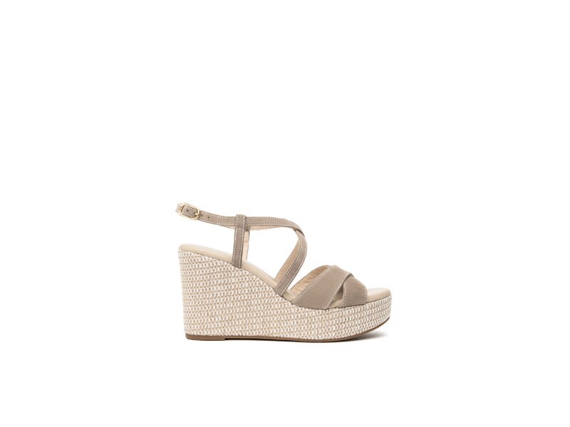 Keilsandale in Velour und Farbe Toupe.