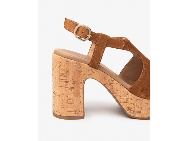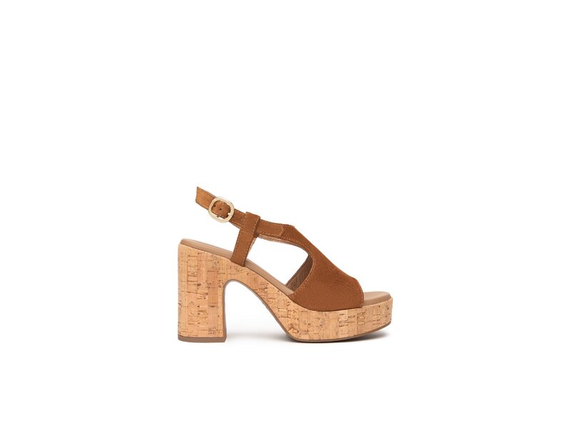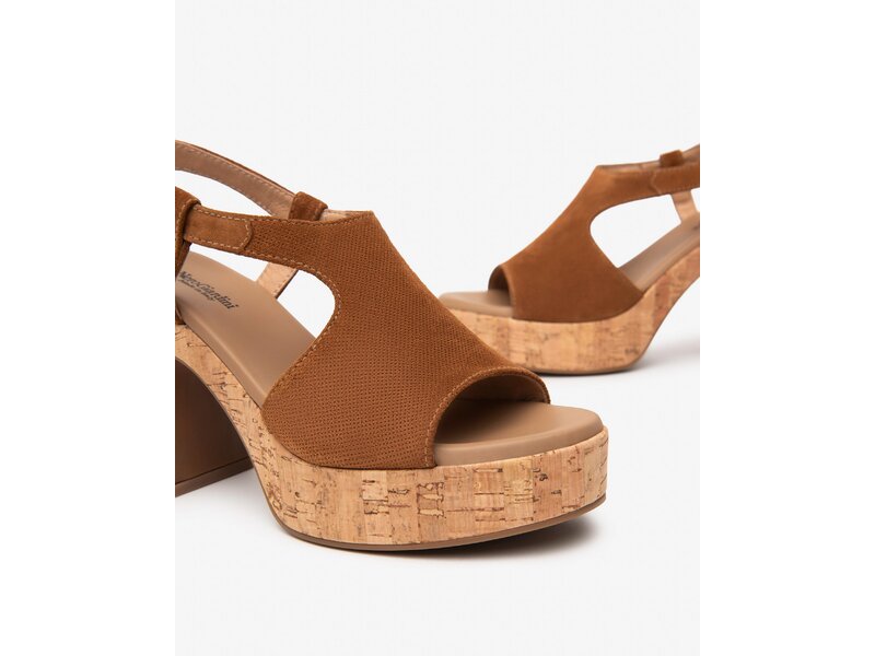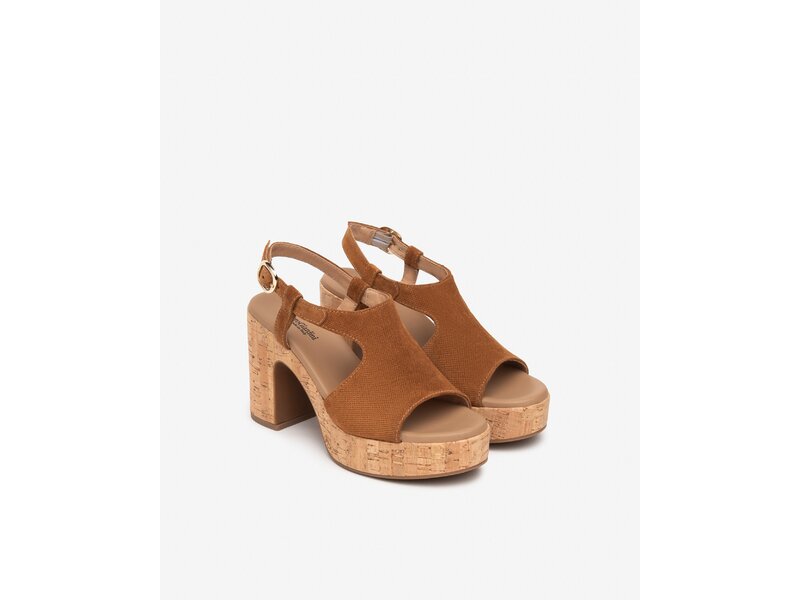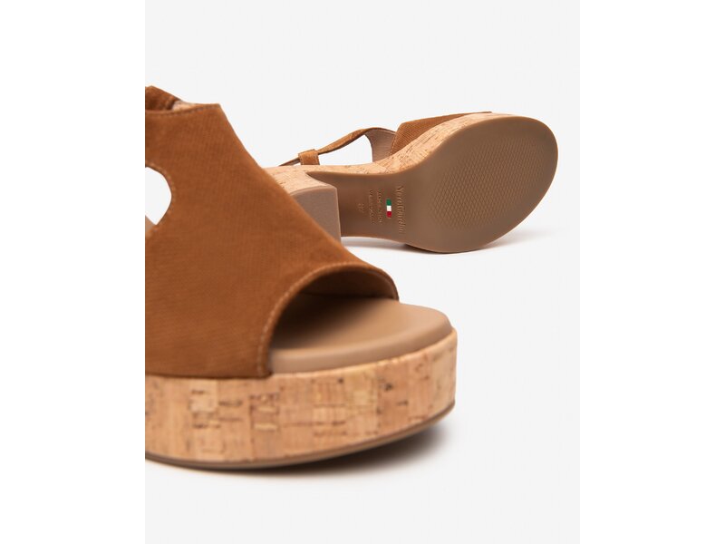 Keilsandale mit blockigem Absatz in Velour Cognac