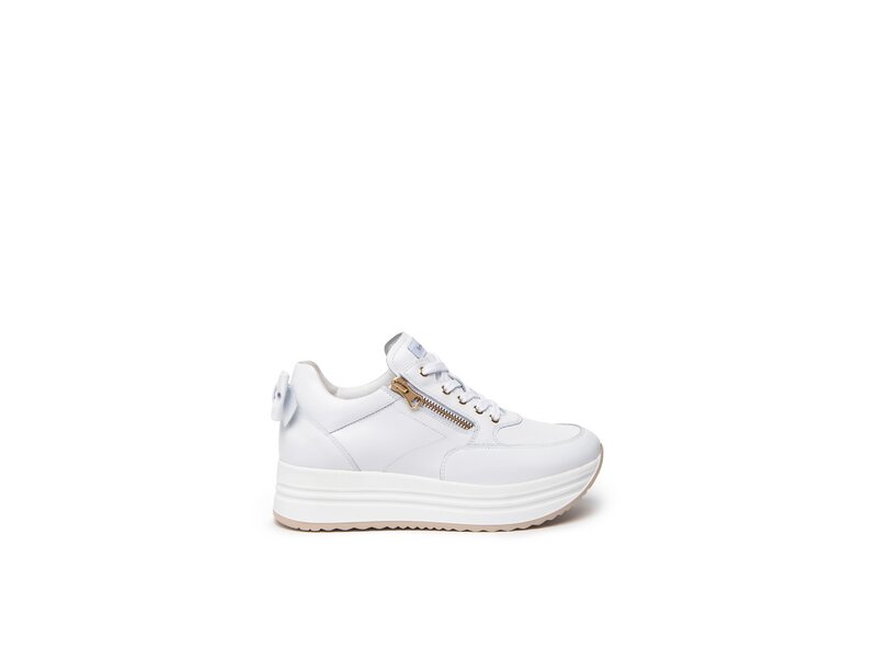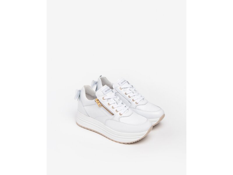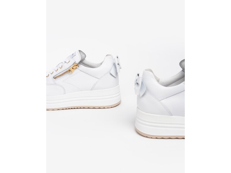Platform weisser Sneaker im Leder, Reissverschluss und Schleife hinter an der Ferse
