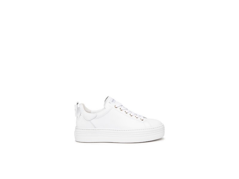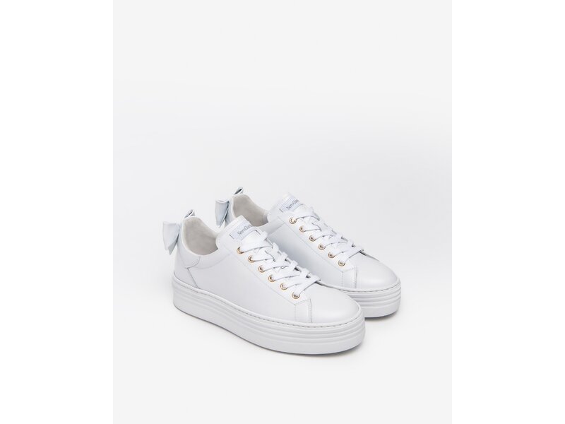 Weisser Sneaker im Leder, weiss, Schleife hinter an der Ferse