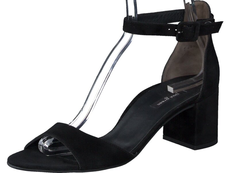 Zeigen Sie Stil mit diesen eleganten Sandaletten aus schwarzem Samtleder. Das cleane Design wird durch den schönen Blockabsatz stilvoll unterbrochen, wodurch eine extravagante Silhouette entsteht. Der zarte Fesselriemen mit verstellbarer Schließe sorgt für perfekten Komfort und überzeugt dank des Druckknopfes für schnelles An- und Ausziehen. Mit diesem komfortablen Paar setzen Sie in Ihren Outfits einen coolen Akzent. _x000D__x000D_Paul Green steht für Damenschuhe von höchster Qualität, gefertigt mit handwerklichem Können und Leidenschaft. Jeder unserer Schuhe wird von qualifizierten Schuhmachermeistern in bis zu 160 Arbeitsschritten hergestellt. Das Ergebnis ist Qualität, die man sieht und spürt.