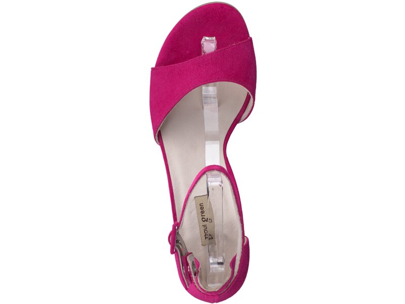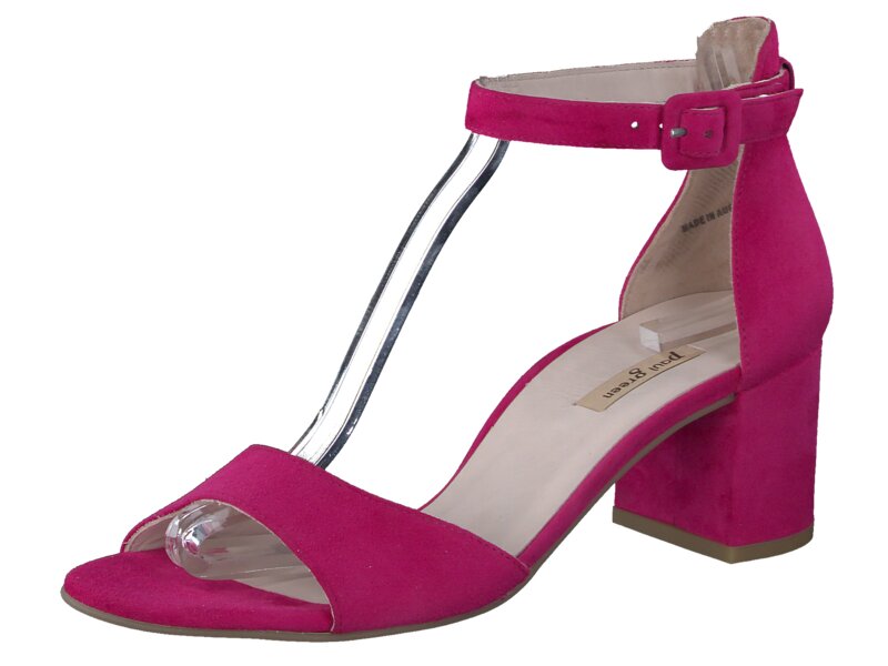 Zeigen Sie Stil mit diesen eleganten Sandaletten aus pinkem Samtleder. Das cleane Design wird durch den schönen Blockabsatz stilvoll unterbrochen, wodurch eine extravagante Silhouette entsteht. Der zarte Fesselriemen mit verstellbarer Schließe sorgt für perfekten Komfort und überzeugt dank des Druckknopfes für schnelles An- und Ausziehen. Mit diesem komfortablen Paar setzen Sie in Ihren Outfits einen coolen Akzent. _x000D__x000D_Paul Green steht für Damenschuhe von höchster Qualität, gefertigt mit handwerklichem Können und Leidenschaft. Jeder unserer Schuhe wird von qualifizierten Schuhmachermeistern in bis zu 160 Arbeitsschritten hergestellt. Das Ergebnis ist Qualität, die man sieht und spürt.
