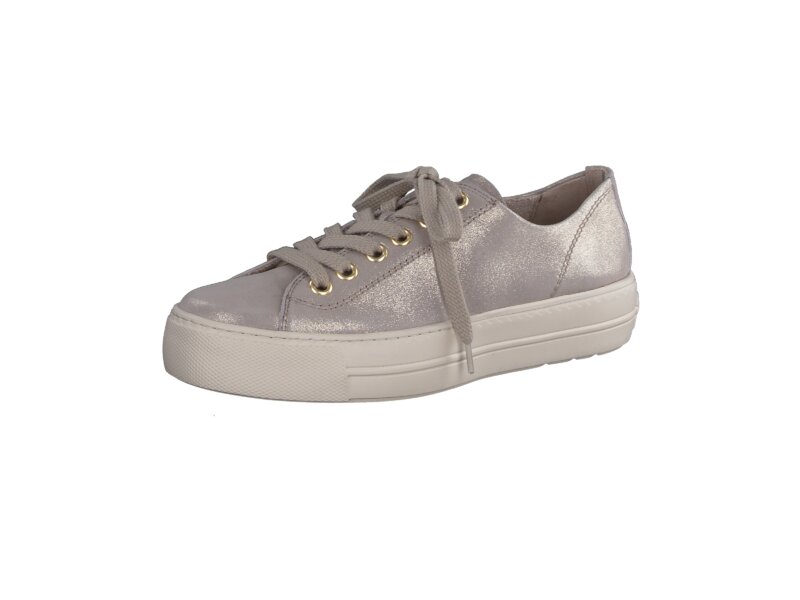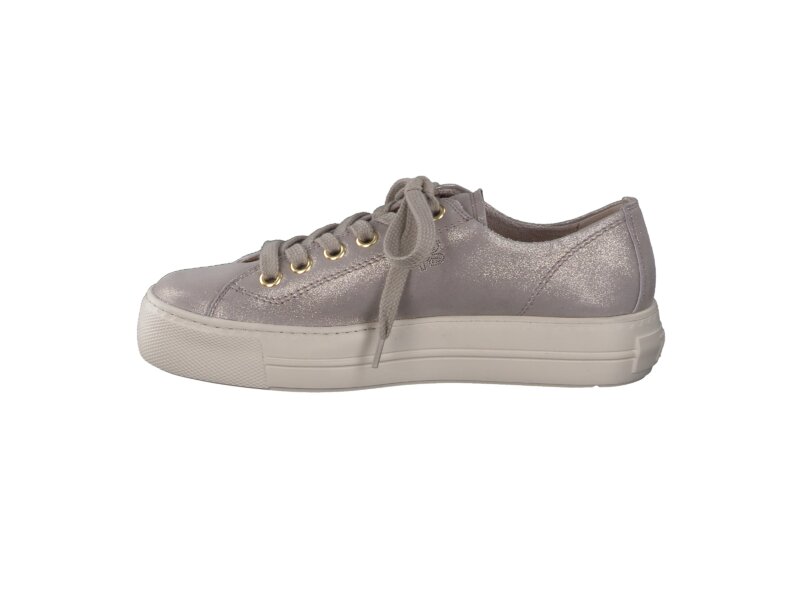 Ihre neuen SUPER SOFTEN Fashion-Lieblinge für schicke Freizeit-Looks sind diese Plateau-Pauls von Paul Green. Gefertigt aus hochwertigem Samtleder in Beige-Metallic besticht das Paar mit einem minimalistischen Design. Diese Sneakers sorgen durch weiches Innenfutter aus Leder mit flauschigen Frottee und extrem softem Fersenteil für unschlagbaren Tragekomfort. Die breite Sohle rundet das Gesamtbild sportiv ab. Verleihen Sie Ihren Outfit-Kreationen ein modisches Finish!_x000D__x000D_Paul Green macht Schuhe mit großer Leidenschaft und Meisterschaft, die sich in Perfektion, Qualität, Stil und Passform ausdrückt. Das Ergebnis: Ein einzigartiges, erhebendes Tragegefühl! Der Paul-Green-Effekt.