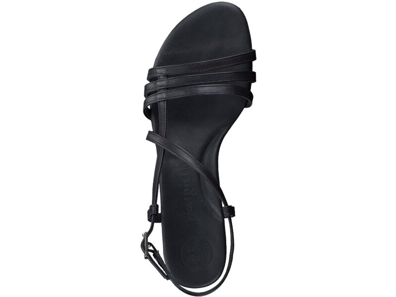 Diese SUPER SOFTEN Sandalen überzeugen mit Eleganz und femininem Charme. Feine Riemchen aus weichem Glattleder in Schwarz untermalen das Design. Durch die seitliche Schließe mit Druckknopf lässt sich das Modell perfekt an den Fuß anpassen. Die super softe Lederausführung sorgt zudem für ein entspanntes Tragegefühl. Ob für einen attraktiven Office-Look oder für ein festliches Outfit mit diesen charmanten Sandalen können Sie immer überzeugen!_x000D__x000D_Paul Green macht Schuhe mit großer Leidenschaft und Meisterschaft, die sich in Perfektion, Qualität, Stil und Passform ausdrückt. Das Ergebnis: Ein einzigartiges, erhebendes Tragegefühl! Der Paul-Green-Effekt.