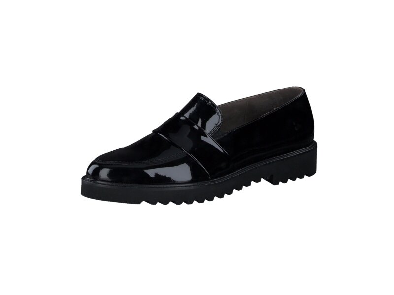 Schlicht und stilvoll präsentieren sich diese SUPER SOFT Slipper von Paul Green. Die klassisch, elegante Formgebung aus schwarzem Softlack-Leder verleiht ein zauberhaftes Modebild. Wohltuend flach und besonders leicht und bequem zum Schlüpfen haben diese Mokassins das Zeug zum Lieblingsstück und können zudem vielfältig kombiniert werden. Überzeugen Sie sich selbst!_x000D__x000D_Paul Green Schuhe haben eine DNA aus Eleganz und Sportlichkeit. Diese DNA steckt in jedem einzelnen Schuh und im gesamten Sortiment.
