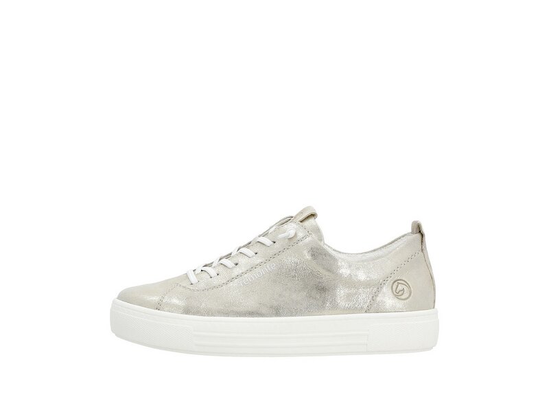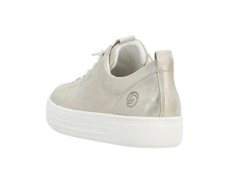Mehr Bewegungsfreiheit für die Füße! Diese goldenen remonte Sneaker aus Rauleder begleiten dich mit Style und bestem Laufkomfort durch die Saison. Zusätzlich werden bestmöglicher Halt und ideale Passform durch die weiße Schnürung garantiert. Dank der bewährten remonte Lite ´n Soft Technologie treffen eine super leichte Sohle und ein weiches Wechselfußbett aufeinander. Die Sneaker in Komfortweite sind bis zur Schuhgröße 45 erhältlich! Die Innenfütterung aus Microvelour ist leicht und atmungsaktiv. Mehr Coolness geht nicht!
