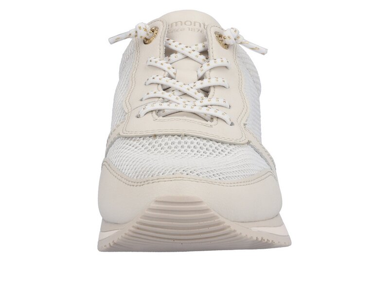 Weiße Sneaker never go out of style! Diese cremeweißen remonte Sneaker aus Kunstleder lassen die Herzen modebewusster Frauen höher schlagen. Dieser Schuh ist sowohl mit Schnürsenkeln als auch mit einem Gummizug ausgestattet - ganz nach deinem Geschmack. Die Lite ´n Soft Technologie kombiniert eine super leichte Sohle mit weichem Fußbett. Wohlgefühl bei jedem Schritt. Das Modell ist optional auch bis zur Schuhgröße 45 erhältlich. Bequemer wird’s nicht mehr!