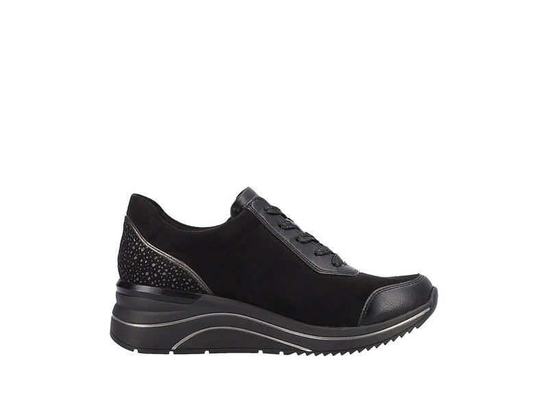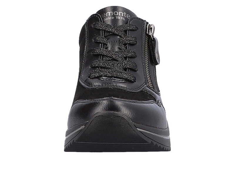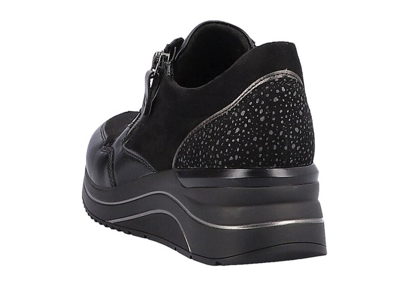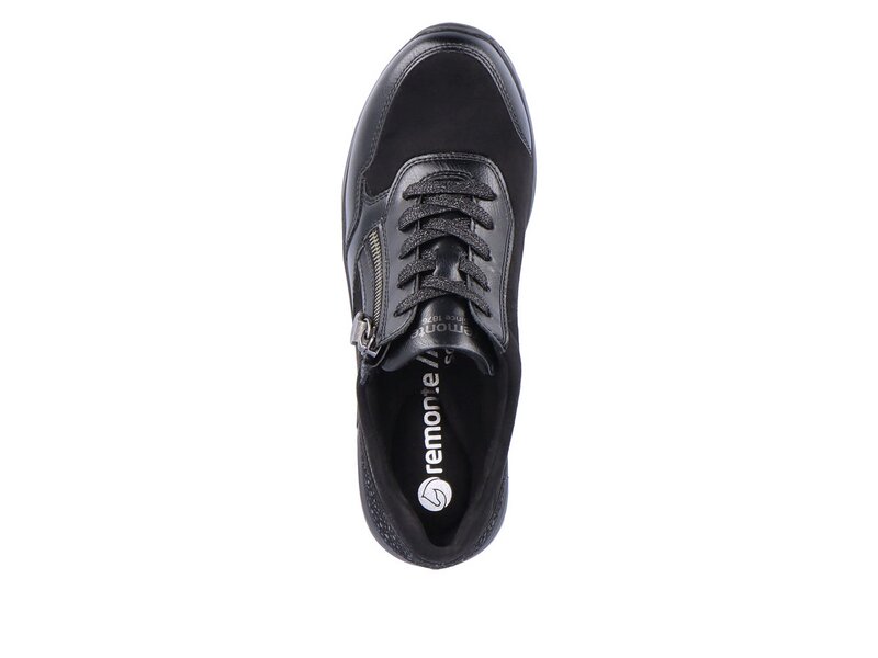 Trendbewusst! Diese nachtschwarzen Sneaker aus dem Hause remonte wissen zu begeistern. Eine Schnürung ergänzt den Reißverschluss und sorgt für Funktionalität und Komfort. Lite ´n Soft: Ein weiches Gefühl im Wechselfußbett trifft auf eine ultra leichte Laufsohle. Dieser Schuh ist in Extraweite geschnitten und optional auch bis zur Schuhgröße 45 erhältlich. Das Innenfutter aus Microvelour ist leicht und atmungsaktiv und sorgt somit den ganzen Tag über für ein angenehmes Tragegefühl. Zugreifen, Mädels!