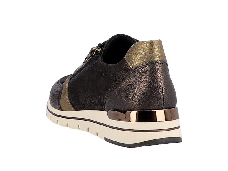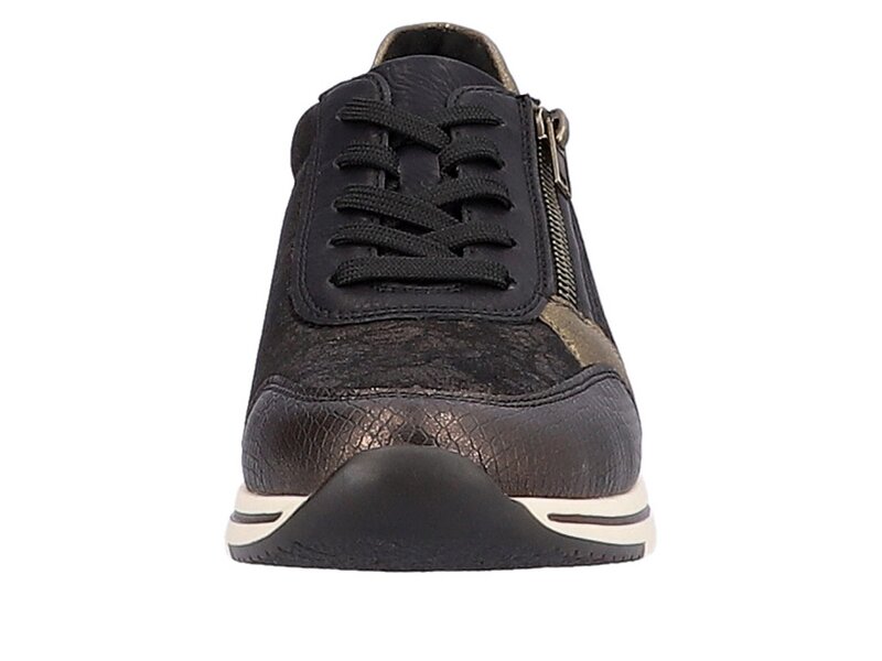 Unbändige Sneaker-Liebe! Diese urbanschwarzen remonte Sneaker überzeugen modebewusste Frauen mit ihren tollen Features. Eine Schnürung ergänzt den Reißverschluss und sorgt für Funktionalität und Komfort. Die leichte Profilsohle wird durch das Wechselfußbett ergänzt, beides zusammen sorgt für einen ganzheitlichen Gehkomfort. Der Schuh ist die perfekte Wahl für große Füße: Er ist in Komfortweite geschnitten und in Übergrößen erhältlich. Das Innenfutter aus Microvelour sorgt für ein absolutes Wohlgefühl unter den Füßen. Ganz nach dem Motto Komfort meets Style!