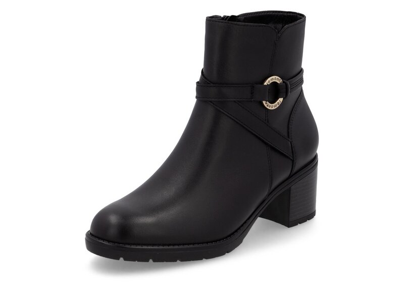 Hier steckt Liebe zum Detail drin: Diese schwarzen remonte Stiefeletten aus Glattleder wissen genau, wie Style funktioniert. Für ein bequemes An- und Ausziehen sorgt der Reißverschluss. Ein wahrer Eyecatcher ist die runde Zierschnalle an der Seite. Die gepolsterte und herausnehmbare Einlegesohle trifft auf eine dämpfende und flexible Sohle mit Blockabsatz, die selbst harten Untergrund super ausbalanciert. Mehr Coolness geht nicht!