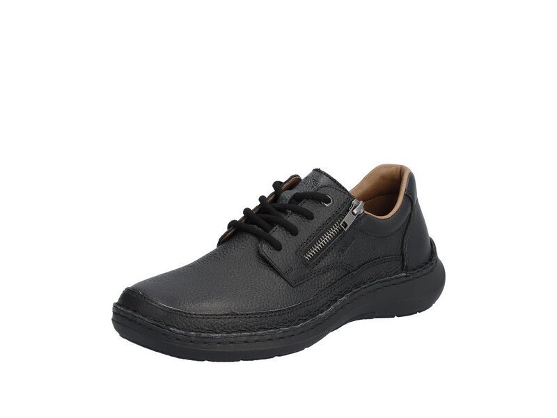 Wir lieben Schwarz! Diese nachtschwarzen Rieker Schnürschuhe aus Glattleder sind ein komfortabler Begleiter. Die clevere Kombination aus Reißverschluss und Schnürung ermöglicht ein unkompliziertes An- und Ausziehen. Die leichte und schockabsorbierende Sohle verwöhnt die Füße darüber hinaus bei jedem Schritt. Zudem sorgt die extra weiche Decksohle für eine Extraportion Tragekomfort. Durch die Extraweite H ist den Zehen mehr Bewegungsfreiheit geboten. Deine Best-Buddies für die neue Saison!