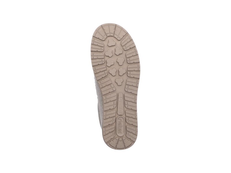 Hineinschlüpfen und happy sein: Diese hellbeigen Slipper sind der perfekte Begleiter für jeden Anlass. Der Elastikeinsatz ermöglicht ein leichtes An- und Ausziehen. Die ultra leichte und flexible Sohle bietet anhaltendes Wohlgefühl ? auch an langen Tagen. Die herausnehmbare Einlegesohle sorgt für maximalen Komfort. Darüber hinaus ist deinen Füßen durch die Extraweite H mehr Bewegungsfreiraum im Vorfußbereich geboten. Modisches Wellness-Feeling im Stil von Rieker!