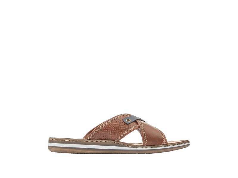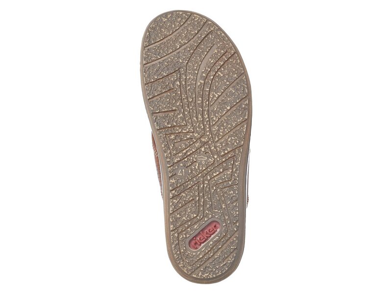 Es wird luftig! Diese nougatbraunen Rieker Pantoletten wurden aufwendig verarbeitet. Das Modell hat keinen Verschluss und kann so unkompliziert angezogen werden. Die beige Zickzack-Naht setzt das Design modisch in Szene. Der offene Schuh und die schockabsorbierende und leichte Sohle sorgen für anhaltendes Wohlgefühl. Der Schuh ist in Komfortweite G geschnitten und sichert dem Fuß genügend Freiraum. Der Schuh ist mit offenporigem Material gefüttert, das besonders atmungsaktiv und feuchtigkeitsabsorbierend ist. Einfach hineinschlüpfen und genießen - mit Rieker!