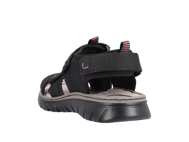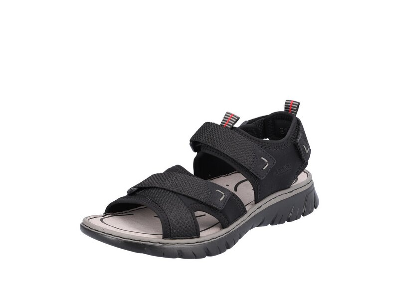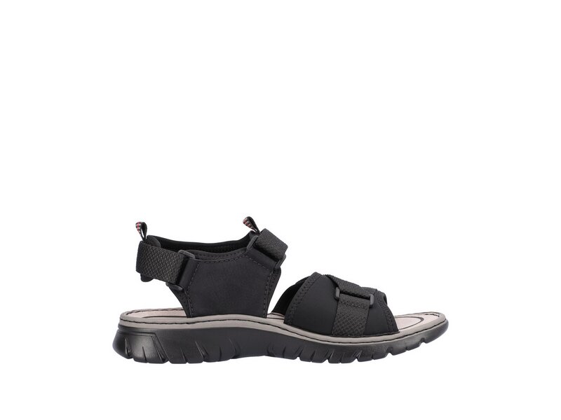 All-time favorite! Diese tiefschwarzen Trekkingsandalen aus Kunstleder von Rieker geben dem Fuß Freiraum und halten ihn dennoch sicher. Durch den Klettverschluss kann der Schuh ganz schnell angezogen werden. Die schockabsorbierende und sehr leichte Sohle verwöhnt die Füße zusätzlich bei jedem Schritt. Außerdem ist deinen Füßen durch die Komfortweite G mehr Bewegungsfreiraum im Vorfußbereich geboten. Alles in einem – top!