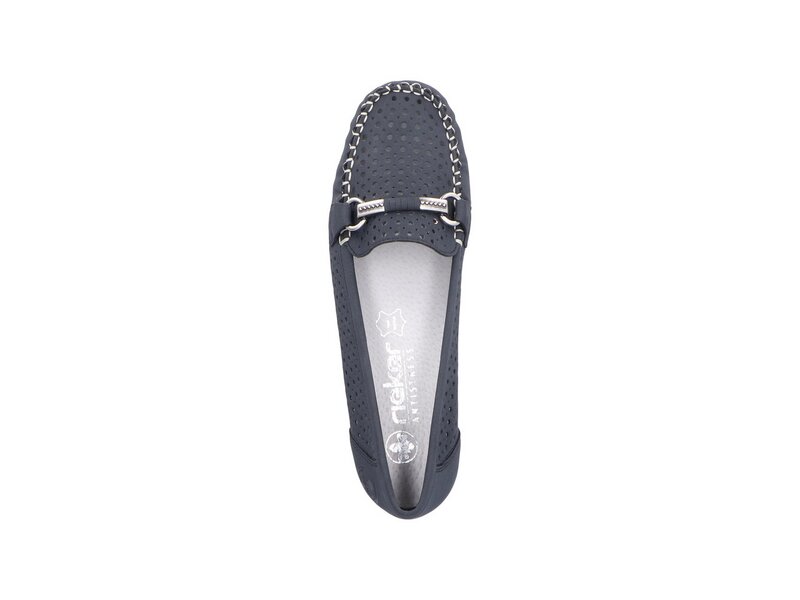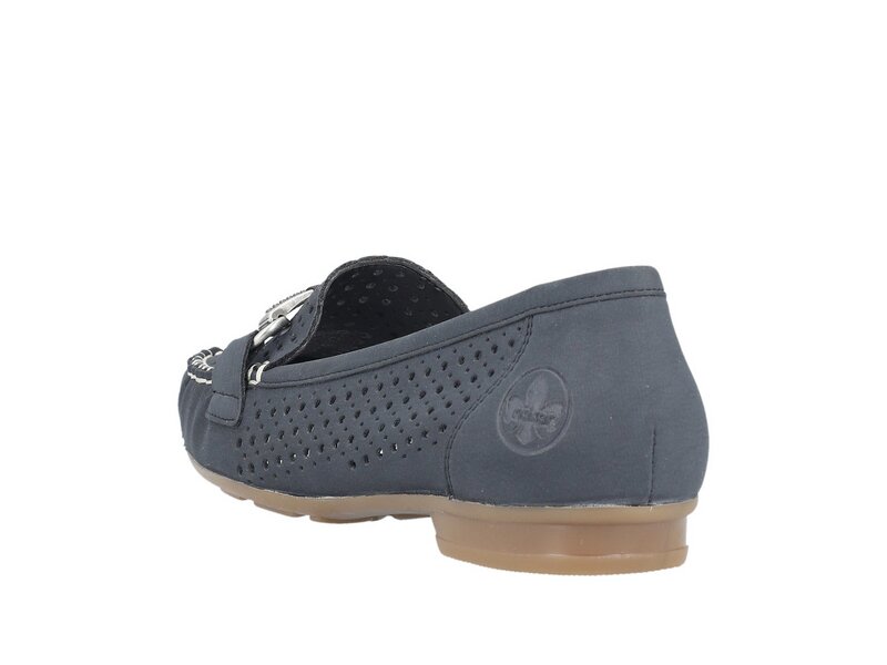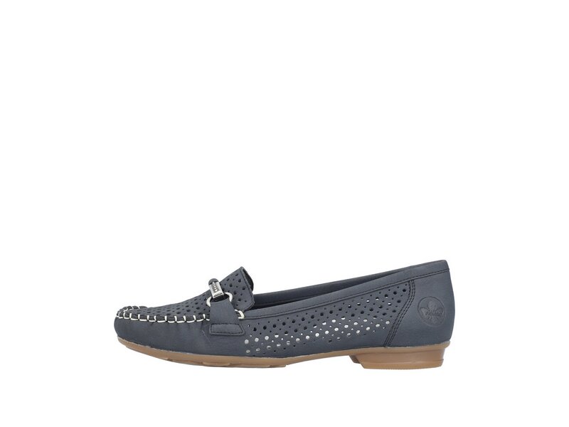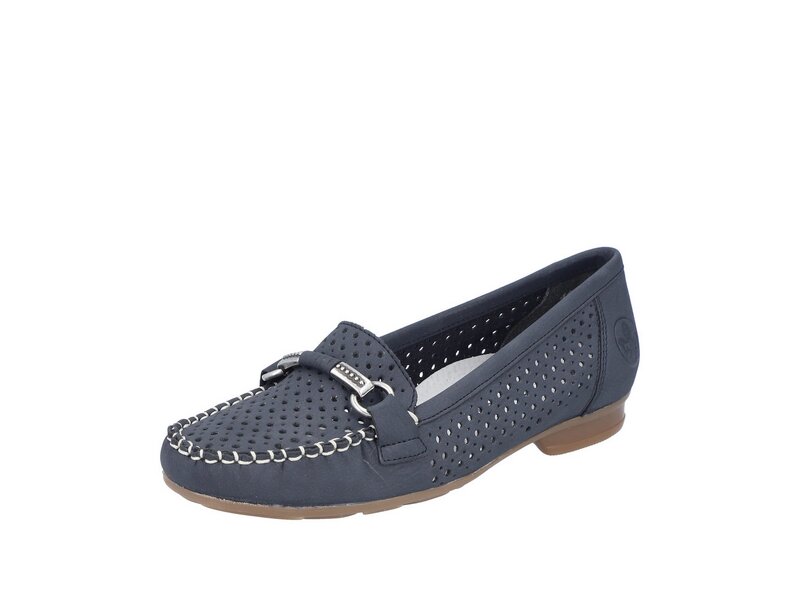 Sommerliebe! Mit diesen marineblauen Rieker Damenschuhen sind Sie immer gut gekleidet und fühlen sich maximal wohl. Sie können sie ganz einfach anziehen, indem Sie sie einfach überziehen, ohne einen Reißverschluss zu verwenden. Der durchbrochene Stil ist ein Blickfang. Verfügt über eine rutschfeste Sohle mit hervorragendem Halt, sodass Sie sicher gehen können. Ein weiterer Vorteil ist die extrem weiche Decksohle. Darüber hinaus bietet die schlanke E 1/2-Passform zusätzlichen Halt. Modisches Wohlgefühl im Stil mit diesen Rieker Damenschuhen!