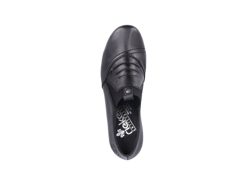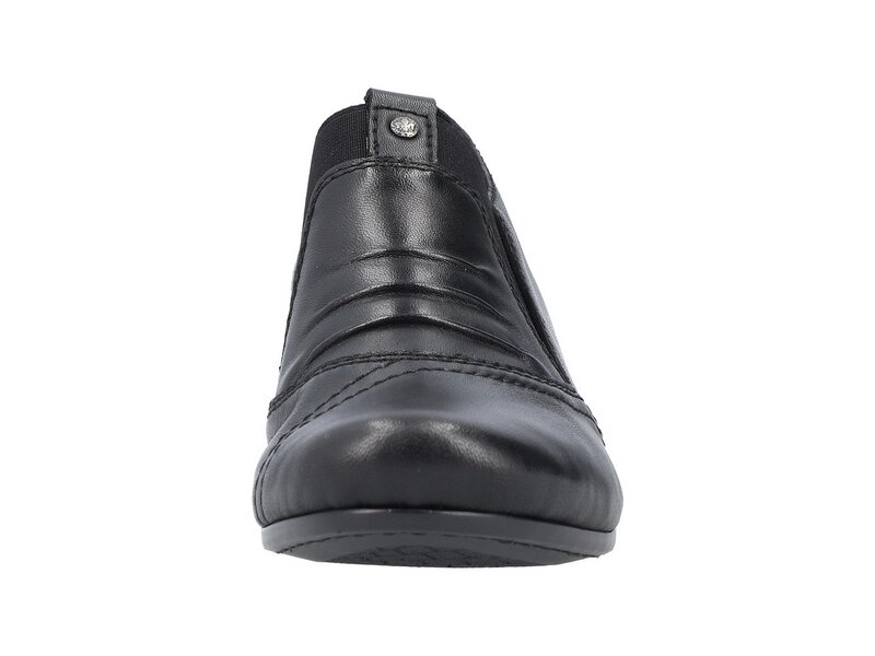 We love black! Diese tiefschwarzen Slipper aus Glattleder von Rieker wurden aufwendig verarbeitet. Der Elastikeinsatz stellt darüber hinaus sicher, dass der Schuh jederzeit sitzt. Die leichte und schockabsorbierende Sohle mit Blockabsatz verwöhnt die Füße zusätzlich bei jedem Schritt. Dank der weichen und besonders atmungsaktiven Leder-Einlegesohle ist bester Komfort und raffinierte Funktionalität gegeben. Achtung, Lieblingsschuh-Potential!