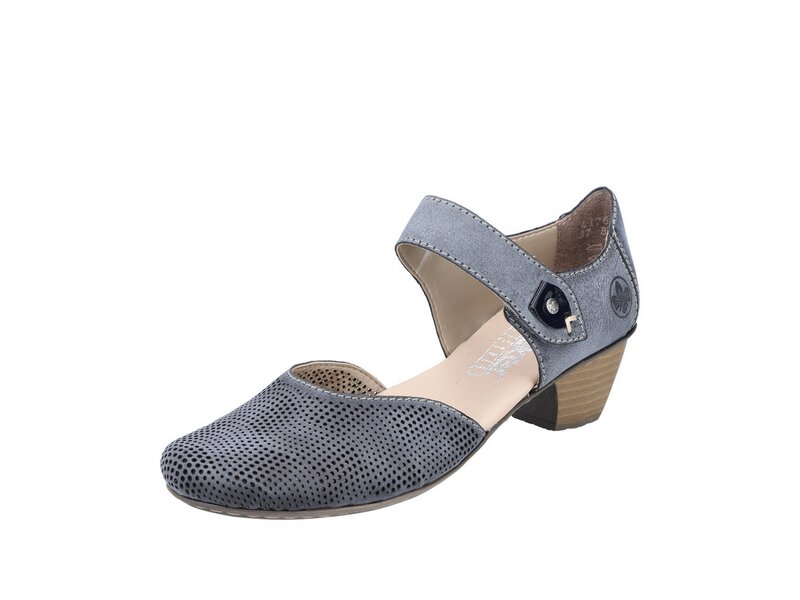 Comfort meets Style. Diese blaugrauen Pumps aus Kunstleder von Rieker garantieren ein himmlisches Tragegefühl. Der Schuh ist dank eines Klettverschlusses in Nullkommanichts angezogen. Die leichte und schockabsorbierende Sohle mit Blockabsatz bietet anhaltendes Wohlgefühl ? auch an langen Tagen. Außerdem ist die Decksohle extra weich. Einfach top!