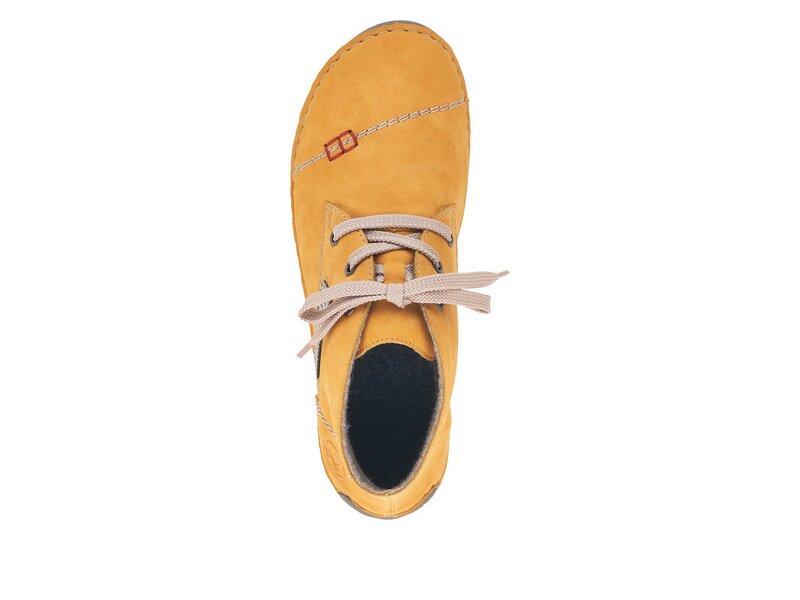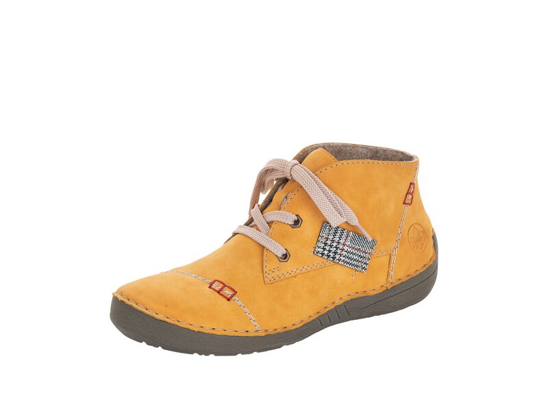 Hineinschlüpfen und wohlfühlen mit Rieker! Diese honiggelben Schnürschuhe von Rieker vereinen cooles Design mit bestem Komfort und hoher Funktionalität. Durch die helle Schnürung ist der Schuh auch gut anpassbar. Das Karomuster an der Seite sorgt für das gewisse Etwas. Die leichte und schockabsorbierende Sohle bietet anhaltendes Wohlgefühl ? auch an langen Tagen. Außerdem ist die Decksohle extra weich. Mehr geht nicht!