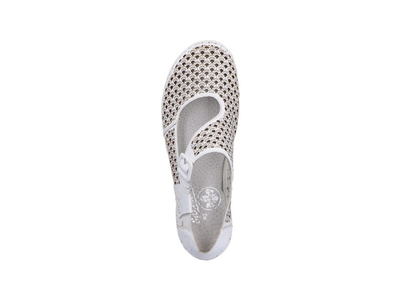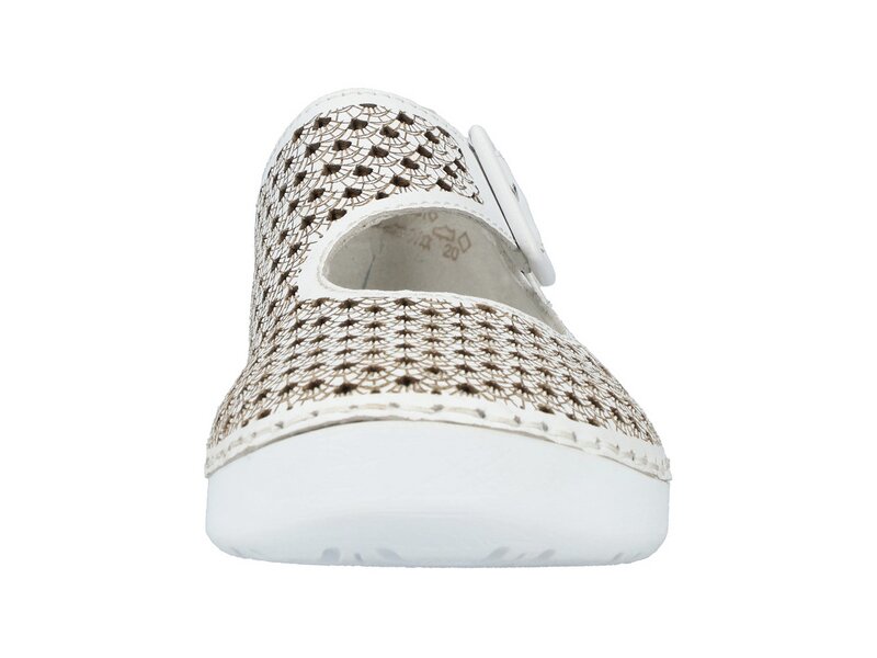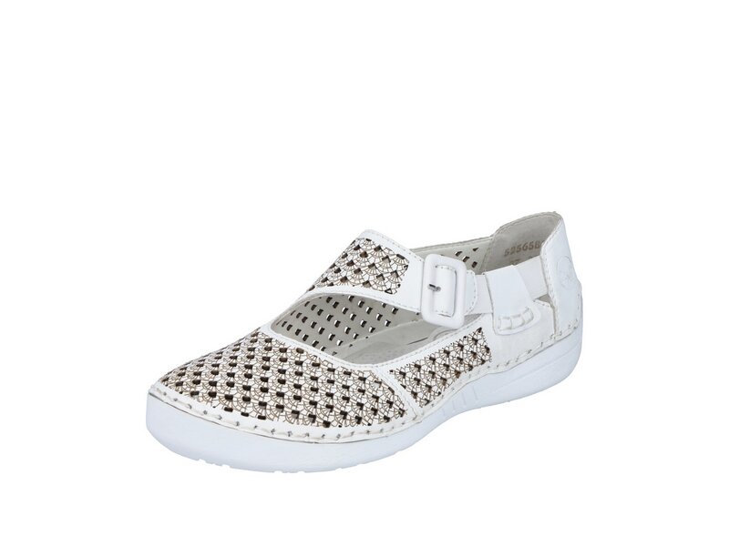 Comfort meets Style. Diese kristallweißen Ballerinas aus Kunstleder von Rieker überzeugen mit echtem Komfort für die Füße. Der Elastikeinsatz ermöglicht einen bequemen Einstieg. Die leichte und schockabsorbierende Sohle bietet anhaltendes Wohlgefühl ? auch an langen Tagen. Obendrein sorgt die extra weiche Decksohle für eine Extraportion Tragekomfort. Modisches Wohlgefühl im Stil von Rieker!