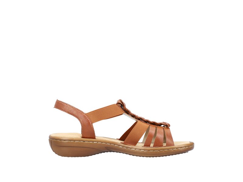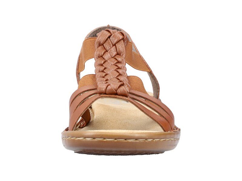 Sandalen-Liebe: Mal schlicht, mal bunt und auffällig. Mit diesen karamellbraunen Rieker Riemchensandalen bist du cool und lässig auf Achse. Schmale Riemen, ein Elastikeinsatz und ein schmaler Fersenriemen ermöglichen einen einfachen Einstieg und sorgen für den idealen Sitz. Der Mittelriemen mit Flechtoptik verleiht dem Schuh das gewisse Etwas. Die schockabsorbierende und leichte Sohle verwöhnt die Füße zusätzlich bei jedem Schritt. Durch die schmale Passform E 1/2 sitzt der Schuh wie angegossen. So machen die warmen Tage Spaß!