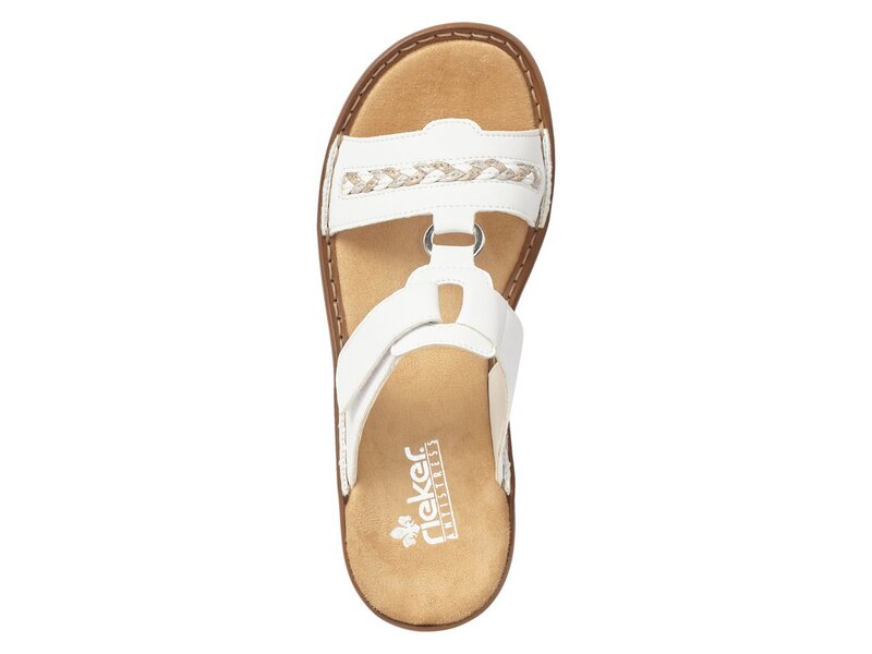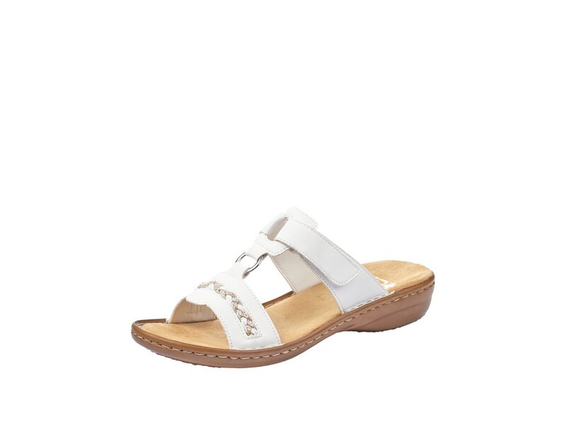 Pantoletten-Power! Diese kristallweißen Rieker Pantoletten überzeugen mit einem klassischen Design und hohem Komfort. Der Klettverschluss ermöglicht einen zügigen Einstieg und hält den Schuh ideal am Fuß. Mit der leichten und schockabsorbierenden Sohle wird das Laufen noch angenehmer. Durch die schmale Passform E 1/2 sitzt der Schuh angenehm eng, ohne dabei zu drücken. 100% Lieblingsschuh-Potential!