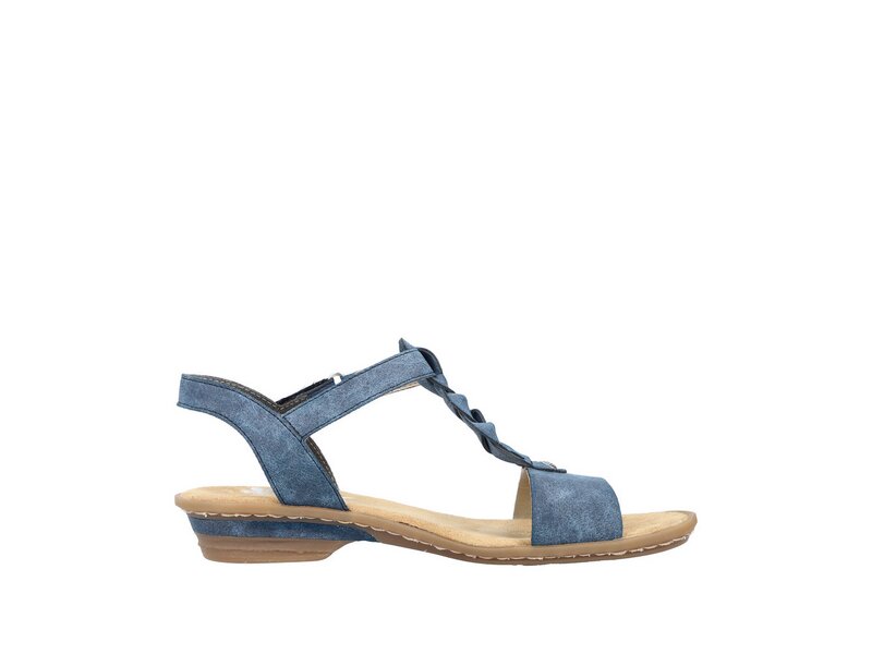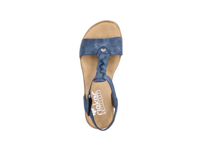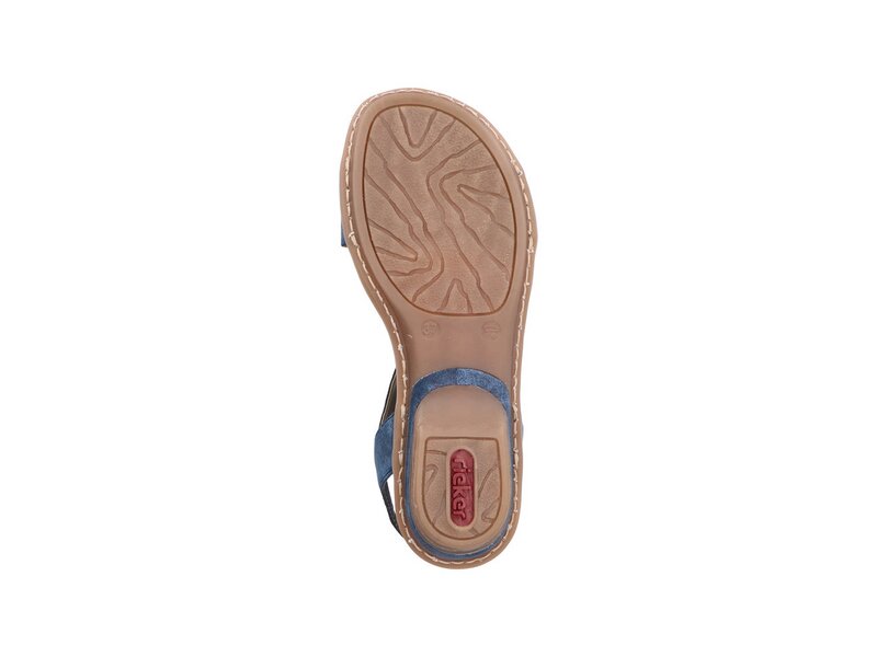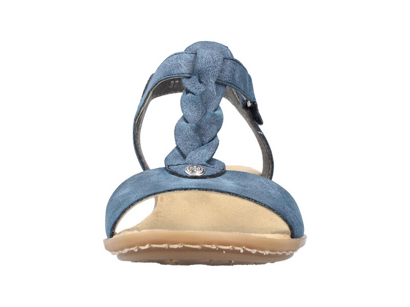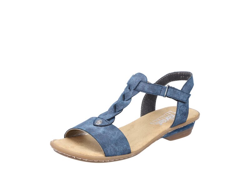 Achtung Lieblingsschuh-Potential! Diese pazifikblauen Riemchensandaletten aus Kunstleder von Rieker geben dem Fuß Freiraum und halten ihn dennoch sicher. Sie sind dank eines Klettverschlusses in Nullkommanichts angezogen. Der geflochtene Mittelriemen setzt einen frischen Akzent. Die griffige und robuste Sohle mit Blockabsatz sorgt für guten Halt. 100% Lieblingsschuh-Potential!
