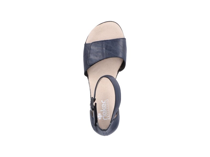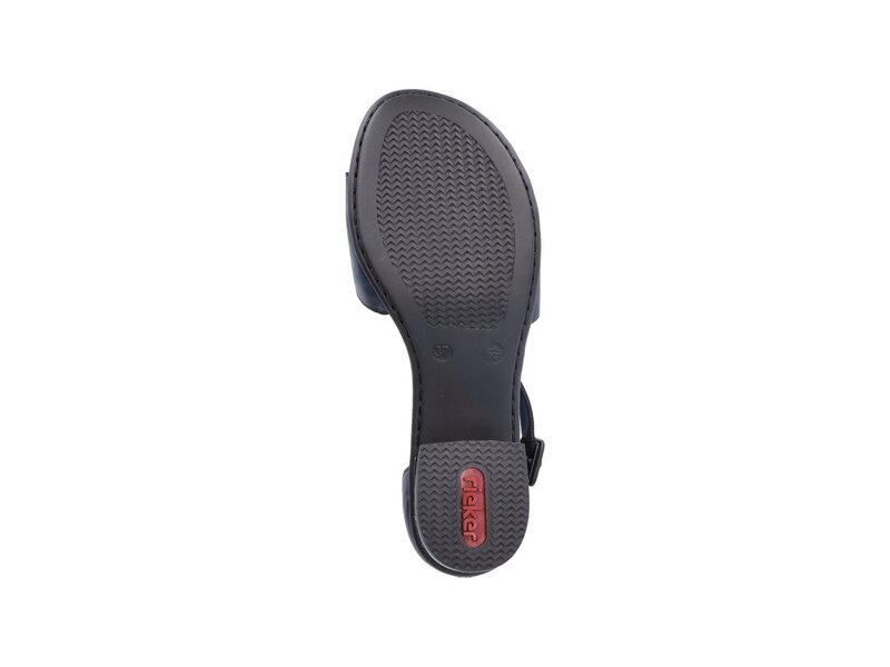 Hineinschlüpfen und wohlfühlen mit Rieker! Diese marineblauen Riemchensandaletten aus Kunstleder von Rieker geben dem Fuß Freiraum und halten ihn dennoch sicher. Der Klettverschluss ermöglicht einen schnellen Einstieg und hält den Schuh ideal am Fuß. Die leichte und schockabsorbierende Sohle mit Blockabsatz verwöhnt die Füße zusätzlich bei jedem Schritt. Wohlge(h)fühl inklusive!