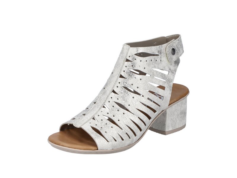 Alleskönner! Diese silbernen Rieker Riemchensandaletten bringen alles unter einen Hut: Komfort, Funktion und natürlich Design. Der Klettverschluss ermöglicht einen unkomplizierten Einstieg und hält den Schuh optimal am Fuß. Die Sohle mit Blockabsatz ist sowohl leicht als auch schockabsorbierend und bietet damit ein doppeltes Wohlgefühl bei jedem Schritt. Einfach top!